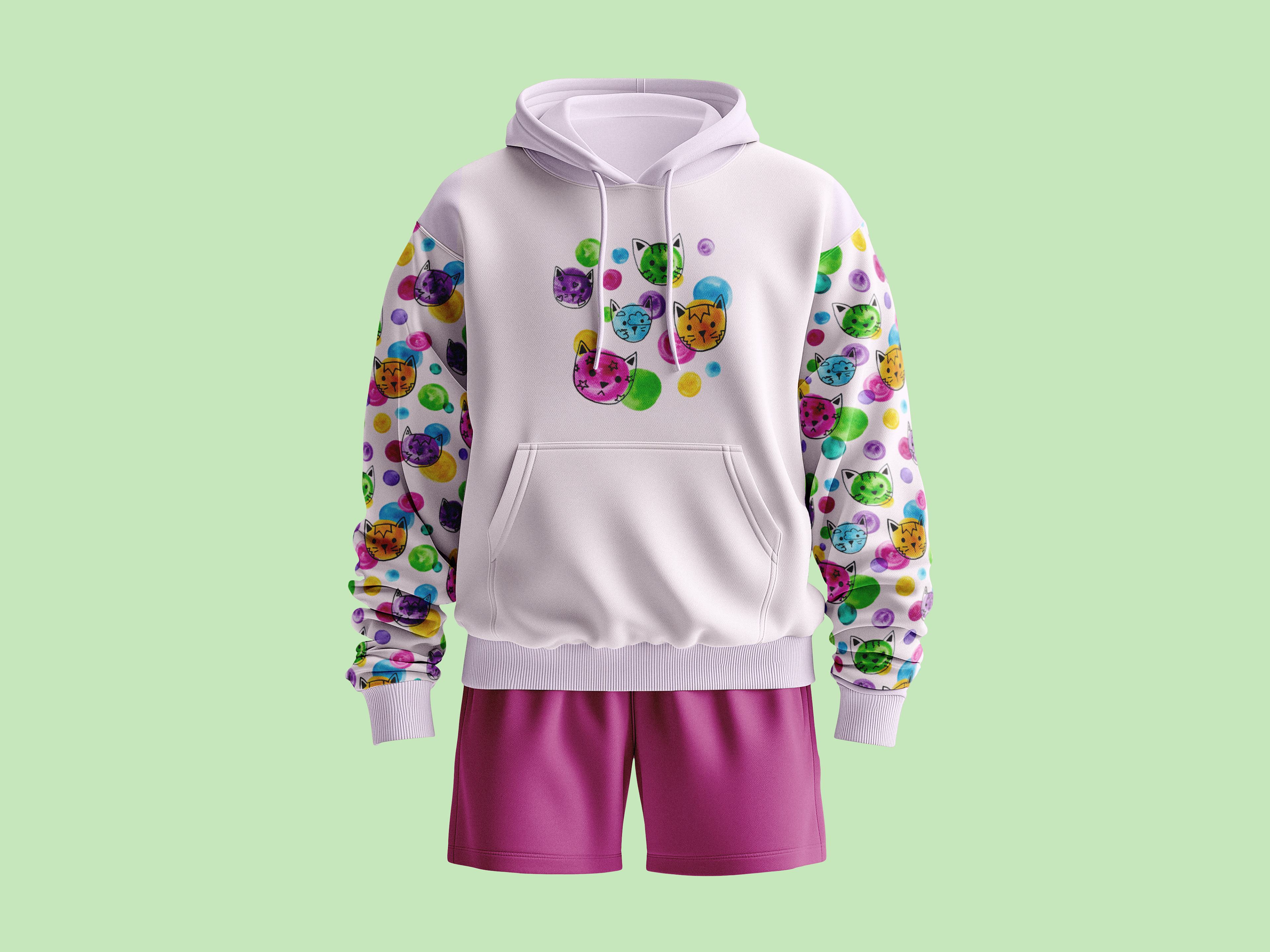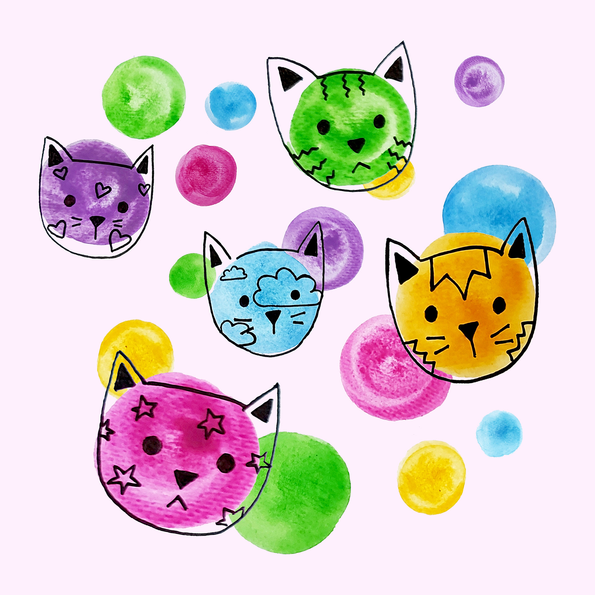 For this pattern design, I took inspiration from what are predicted to be popular trends of 2026, hand-drawn sketchy lines and polkadots. I combined this with cat character designs I had sketched from my previous clay pin badge project to create fun and colourful patterns, aimed at children.